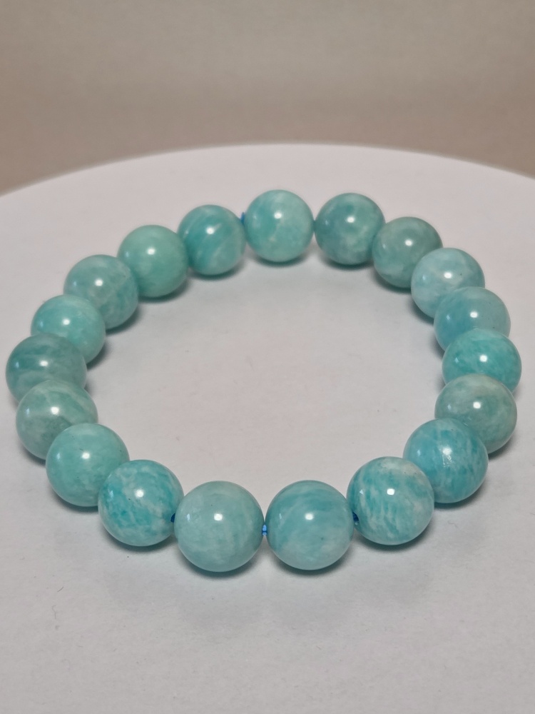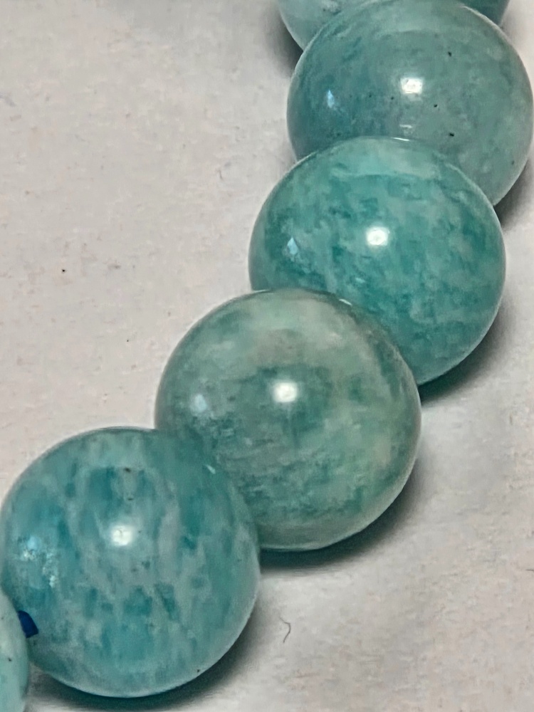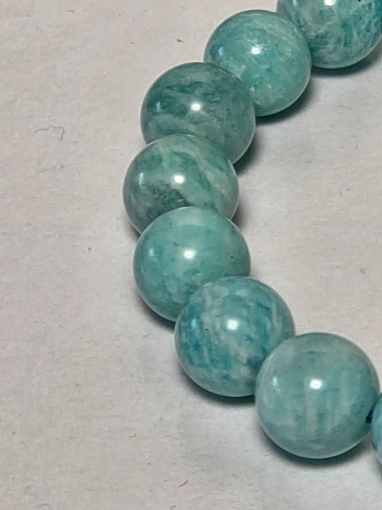 アマゾナイトの青みがかった緑色が柔らかなエネルギーで心を穏やかにすると言われています。