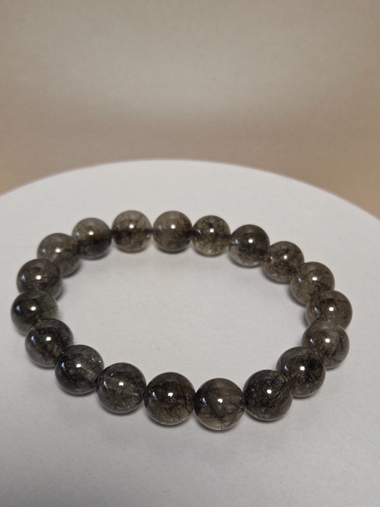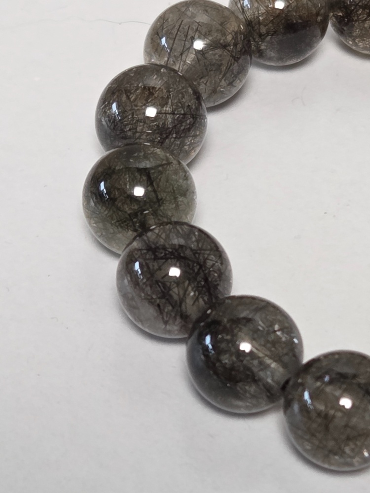 黒いルチルがぎっしり詰まったブラックルチルは、強い魔除けで持ち主に不安や心配事を抑え、常に冷静に物事を判断できるようになり、芯の強い行動力を身につけて行くとされます。